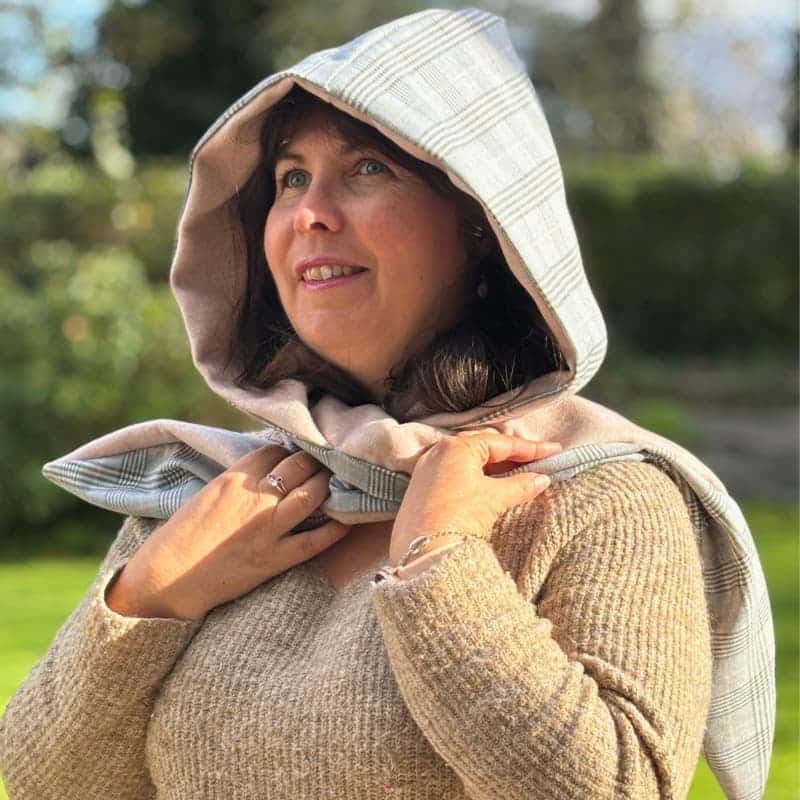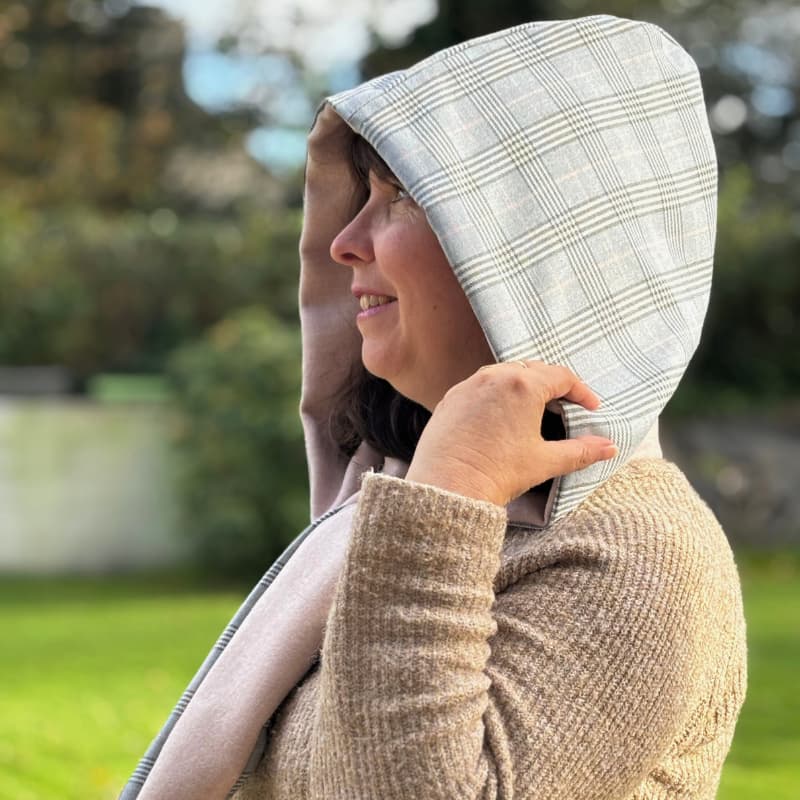 L’ echarpe capuche se porte de plusieurs façons : vous pouvez faire un joli nœud devant pour un look romantique et protégé, le draper sur vos épaules comme une étole élégante pour les journées douces, ou relever la capuche pour vous abriter du vent et de la pluie. C’est vous qui choisissez selon votre style et la météo !
