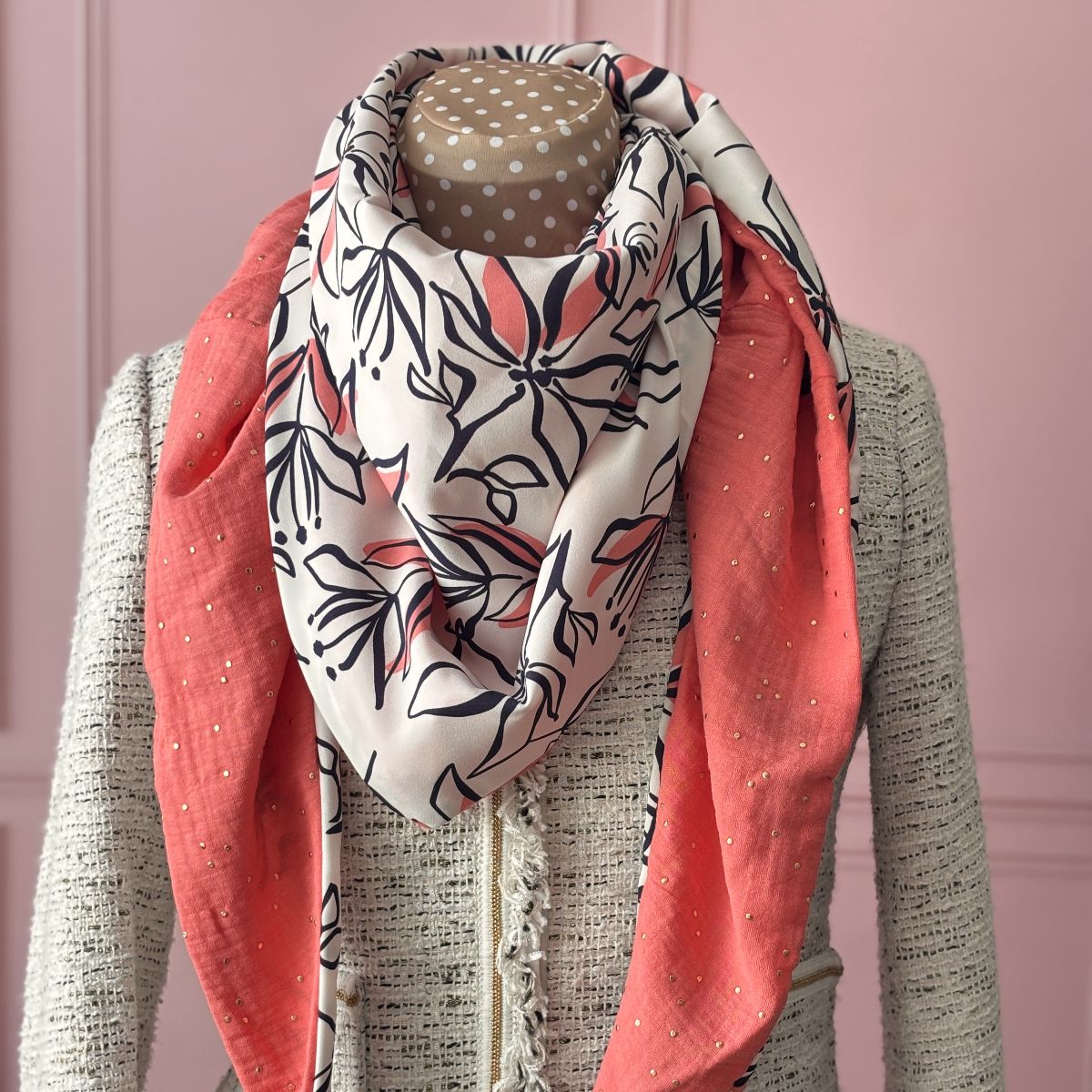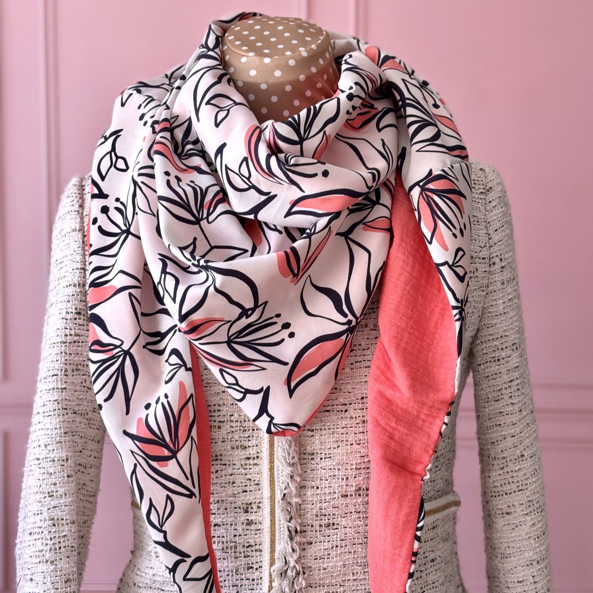 Echarpe chèche femme saumon Magnolia, le printemps avec style et éclat !