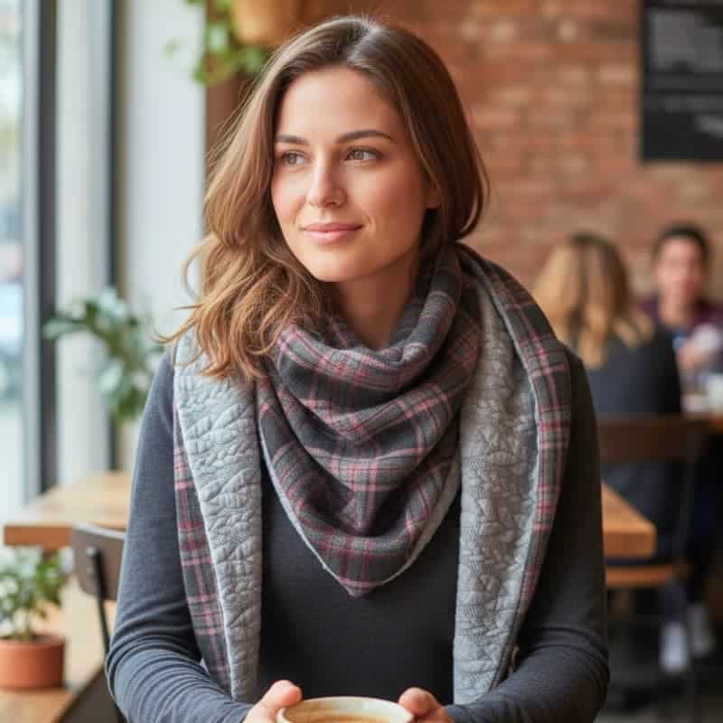 Écharpe motif écossais « Adenium », douceur de l’automne !