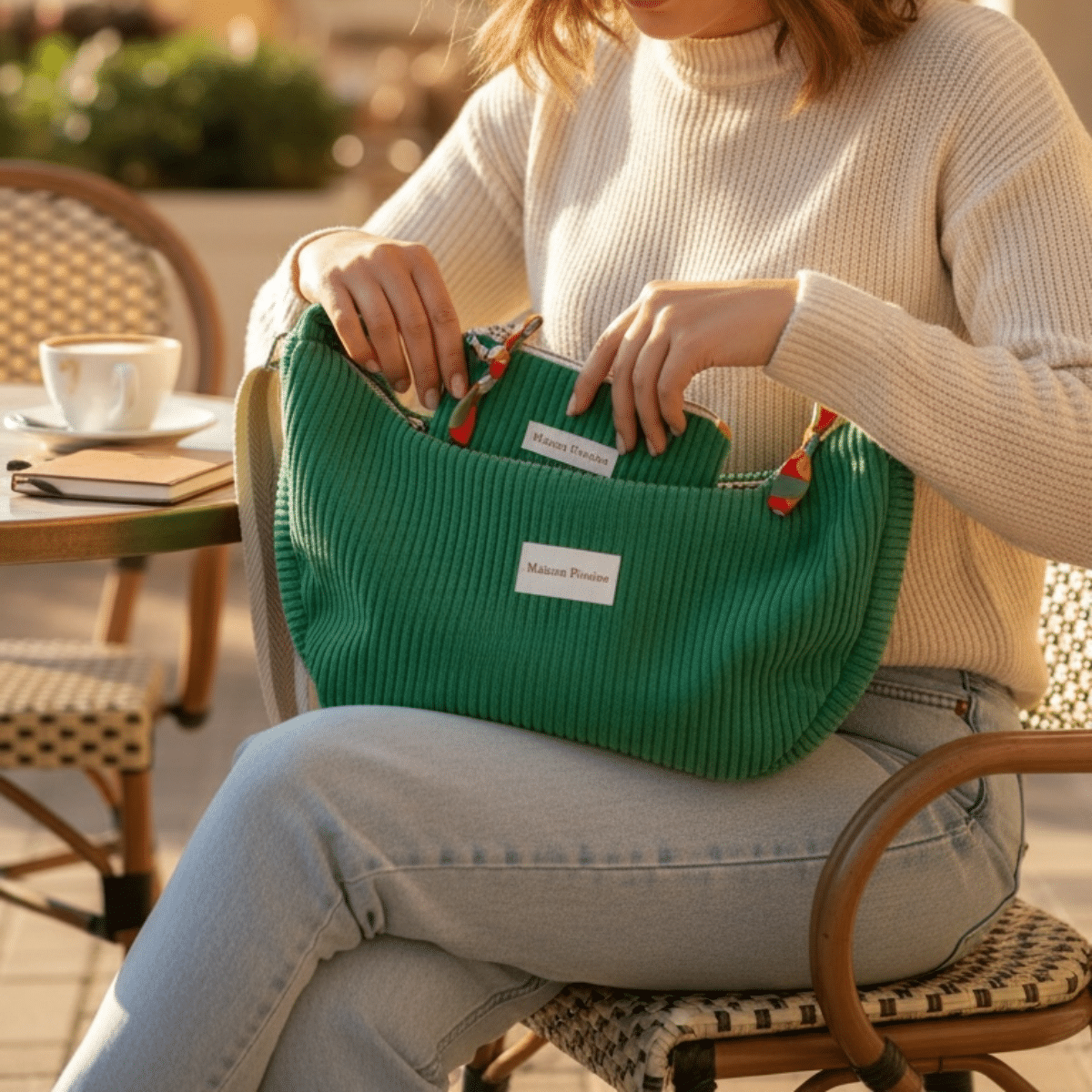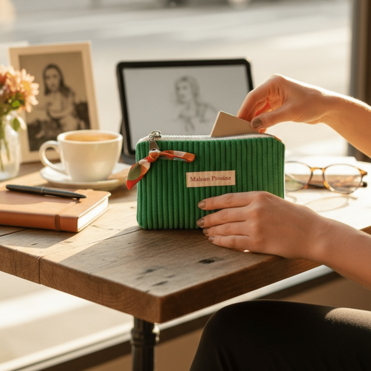 Le porte-monnaie en velours côtelé est le compagnon idéal de votre sac banane Musa ou votre sac croissant ! Compact et élégant, il se glisse facilement dans un sac à main, une pochette ou même dans une poche.
