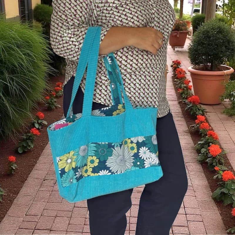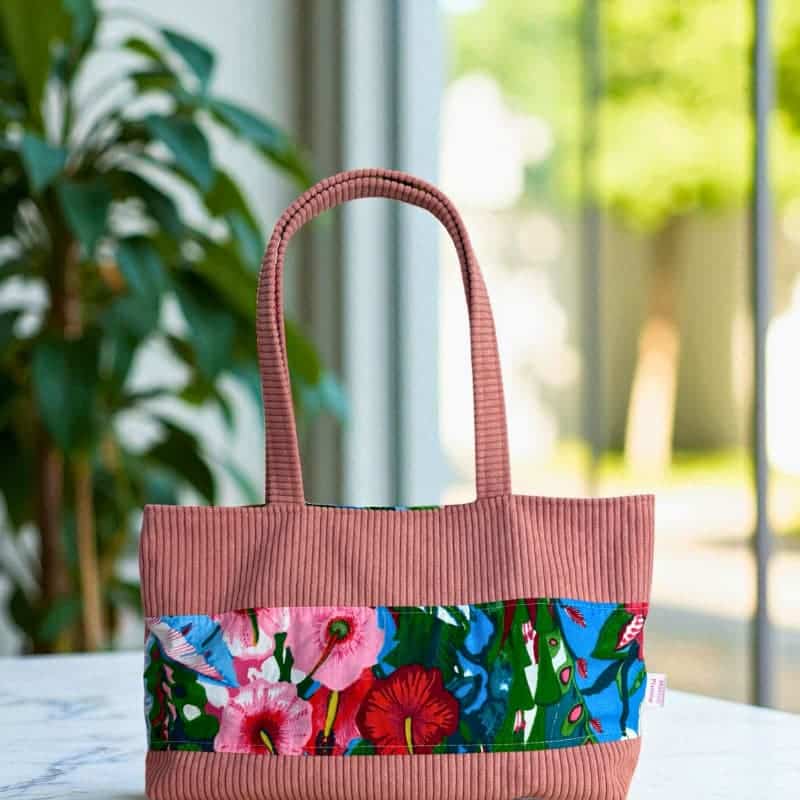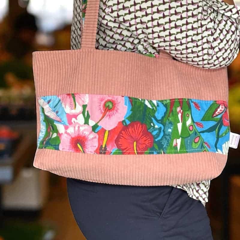 Le cabas Capucine est conรงu en velours cรดtelรฉ et coton fleuri, deux matiรจres qui demandent un entretien tout en douceur.