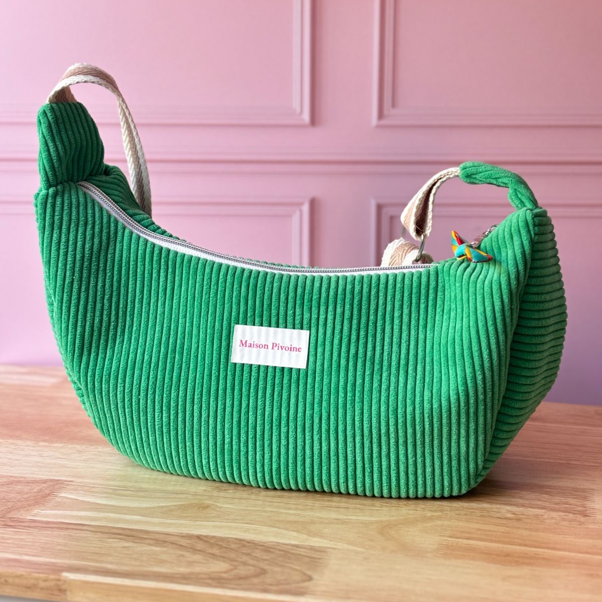 Confectionnée de manière artisanale, ce sac croissant se compose de :