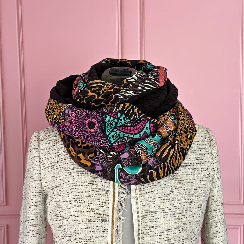 Pour un look encore plus harmonieux, vous pouvez assortir cette écharpe tube femme avec notre sac hibiscus ou la pochette Ancolie.